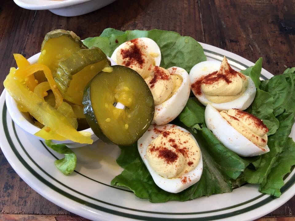 The deviled eggs are straight forward with a nice touch of homemade bread and butter pickles. The butter pickles were fantastic! This appetizer is a good effort at a classic “home” appetizer.