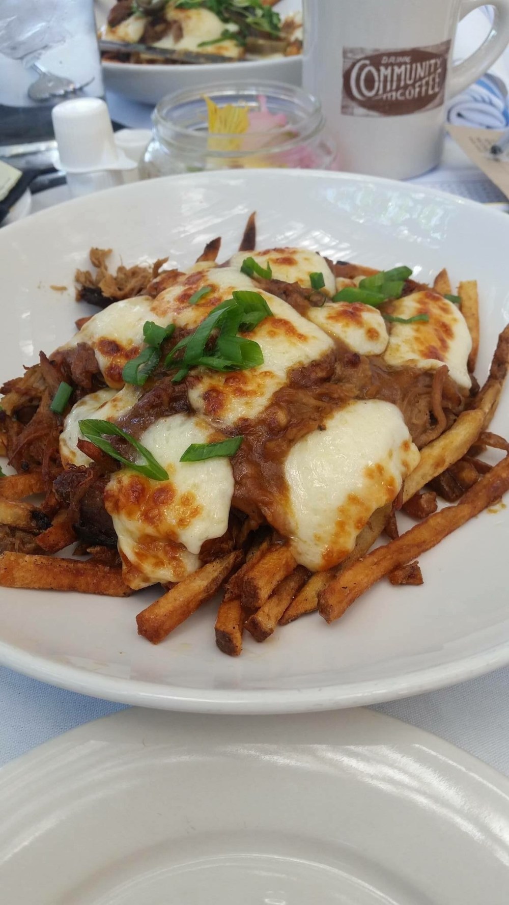 Pork Debris Poutine: pickled jalapeños, applewood smoked cheddar and giblet gravy. This is an appetizer but it could be a main course. We recommend putting an egg on top. The poutine was exactly what you’d think it was. Fries, gravy, cheese curds, but there was the added shredded pork. Again, some use of a pig. This is a delicious starter that you might have difficulty finishing. Bring a friend. Bring several friends. It’s outstanding and very good for a Sunday brunch that might be following a late Saturday.