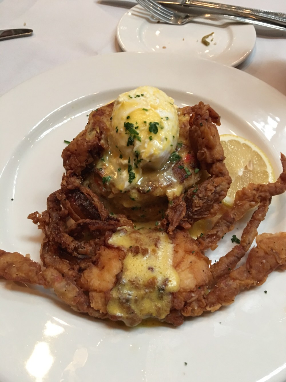 My favorite brunch entrée is the Eggs Louie: Jumbo lump crab cake, sautéed spinach, brioche toast with a poached egg, fried soft shell crab, and béarnaise. I have always thought of this dish as the “brunch cousin” of the Hallelujah Crab. This dish is the emblem of decadence and brunch comfort. Simply the best item on the menu.