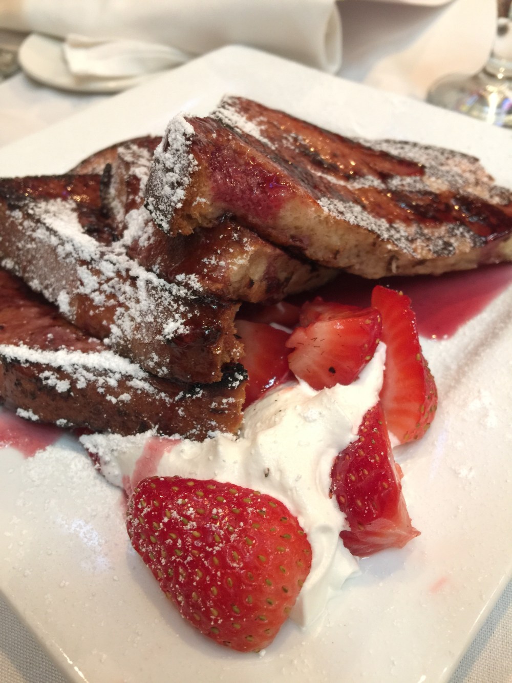 The Pain Perdu is crispy French toast with a homemade fruit syrup, cinnamon sugar, and Chantilly cream—appetizer that could be an entrée unto itself. This was the table favorite.