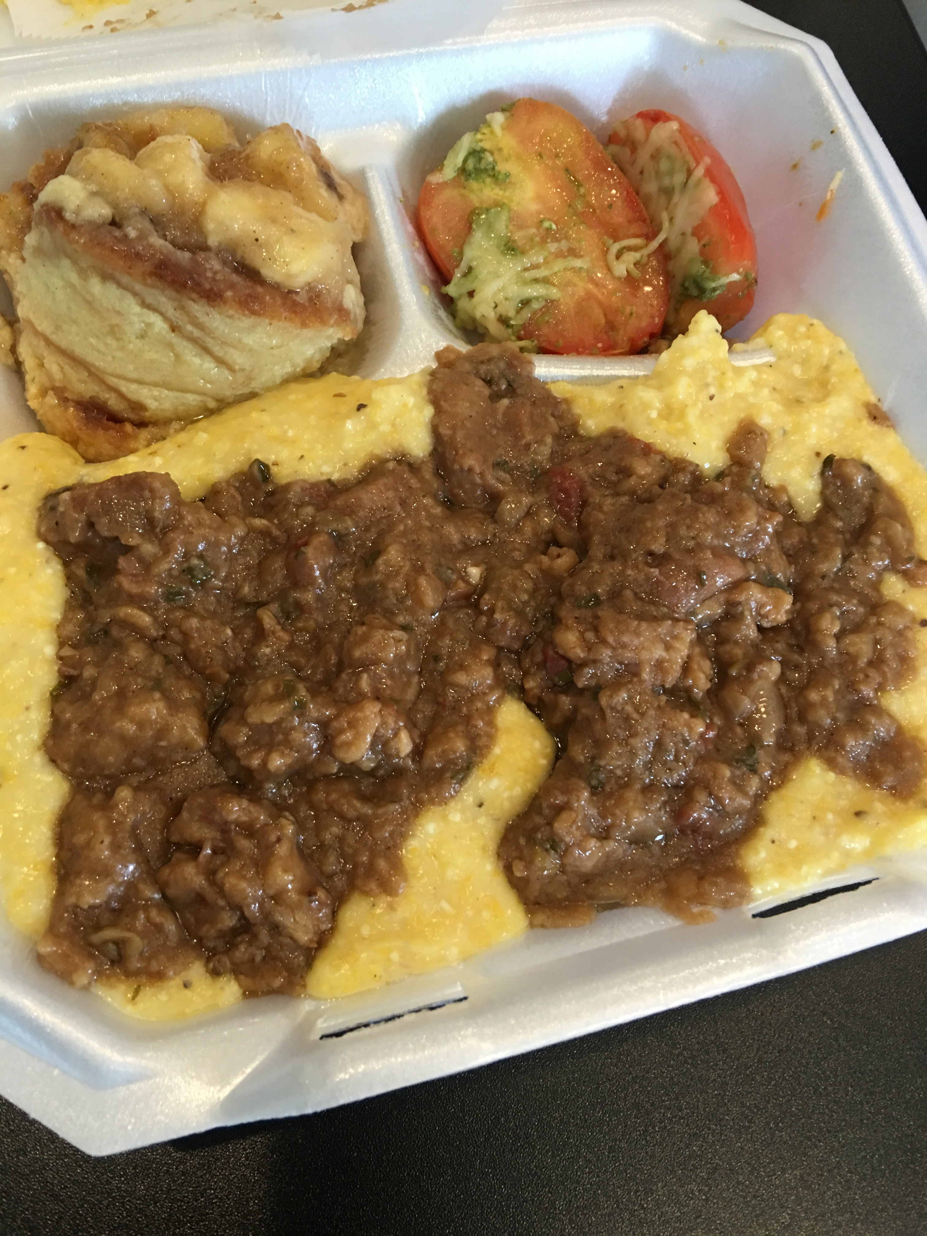 We also tried the veal grillades and grits. Also awesomely portioned and tasty! We may be useless for the rest of the day after this dish. We got a side of the baked tomatoes and the featured banana fosters bread putting dessert. Game changer! Must try!