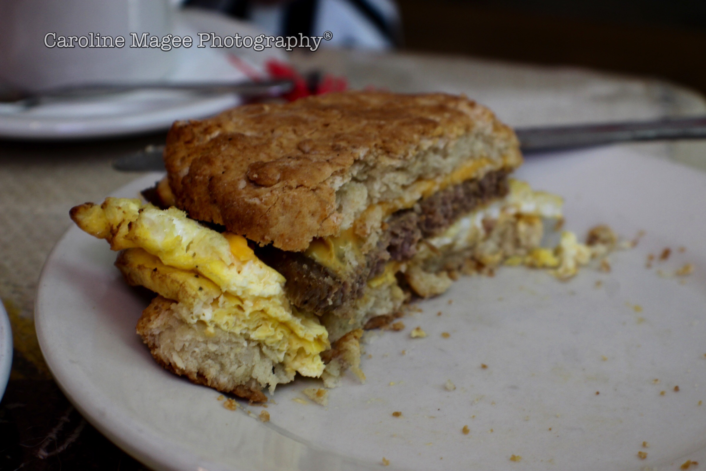 “Biscotto”: fresh house made biscuits, with American cheese, two fresh farm eggs cooked into a patty, with choice of Italian sausage, or in house made pancetta